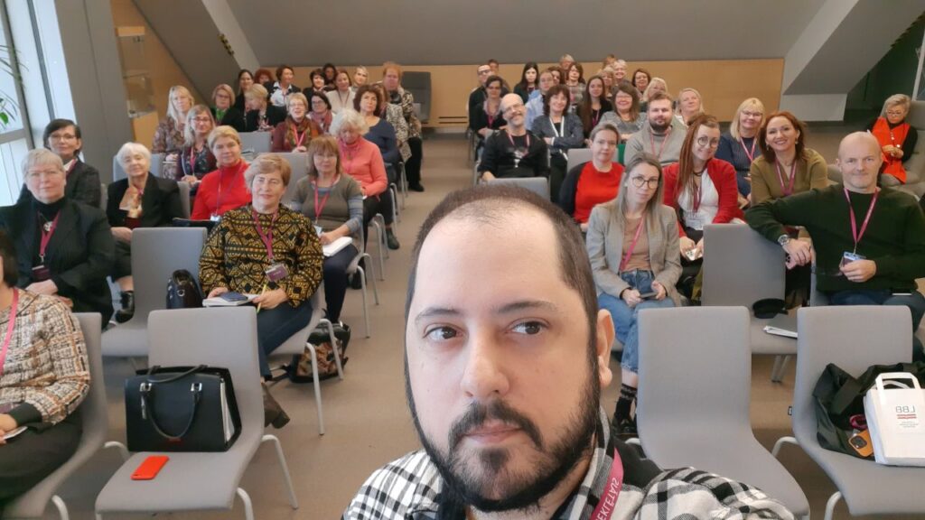 La siguiente parada fue en Riga, donde las conclusiones del workshop fueron presentadas en la Biblioteca Nacional de Letonia a un grupo destacado de profesionales. Debido a la barrera idiomática, se contó con una traductora del inglés al letón, permitiendo así la comprensión del contenido por parte de los asistentes. Aunque no se realizó una instancia grupal de debate, las preguntas de los participantes generaron un diálogo importante en torno a temas como la alfabetización digital y los nuevos roles que están surgiendo para los bibliotecarios en el contexto de la transformación digital.